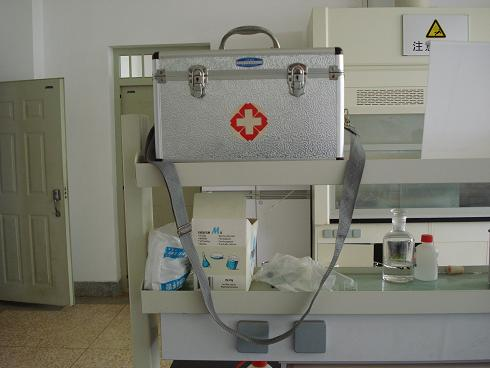 4.“中心”对教师也有相应的安全教育措施,如消防设施的使用、学生实验过程中紧急情况的处理等。学生外出时实习队配备紧急救护(First Aid)药箱,备有消毒、包扎、创口处理等常用药品。